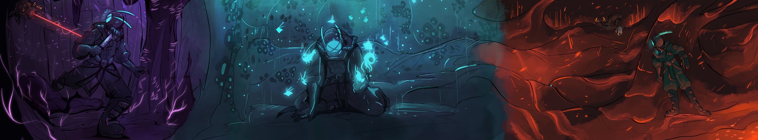 Crafting the Story: I had the honor of leading the narrative team, developing the game’s setting and ecosystem to bring our lead artist and visionary, Sara Rootsey’s (@GayBowzer on Instagram), concepts to life.